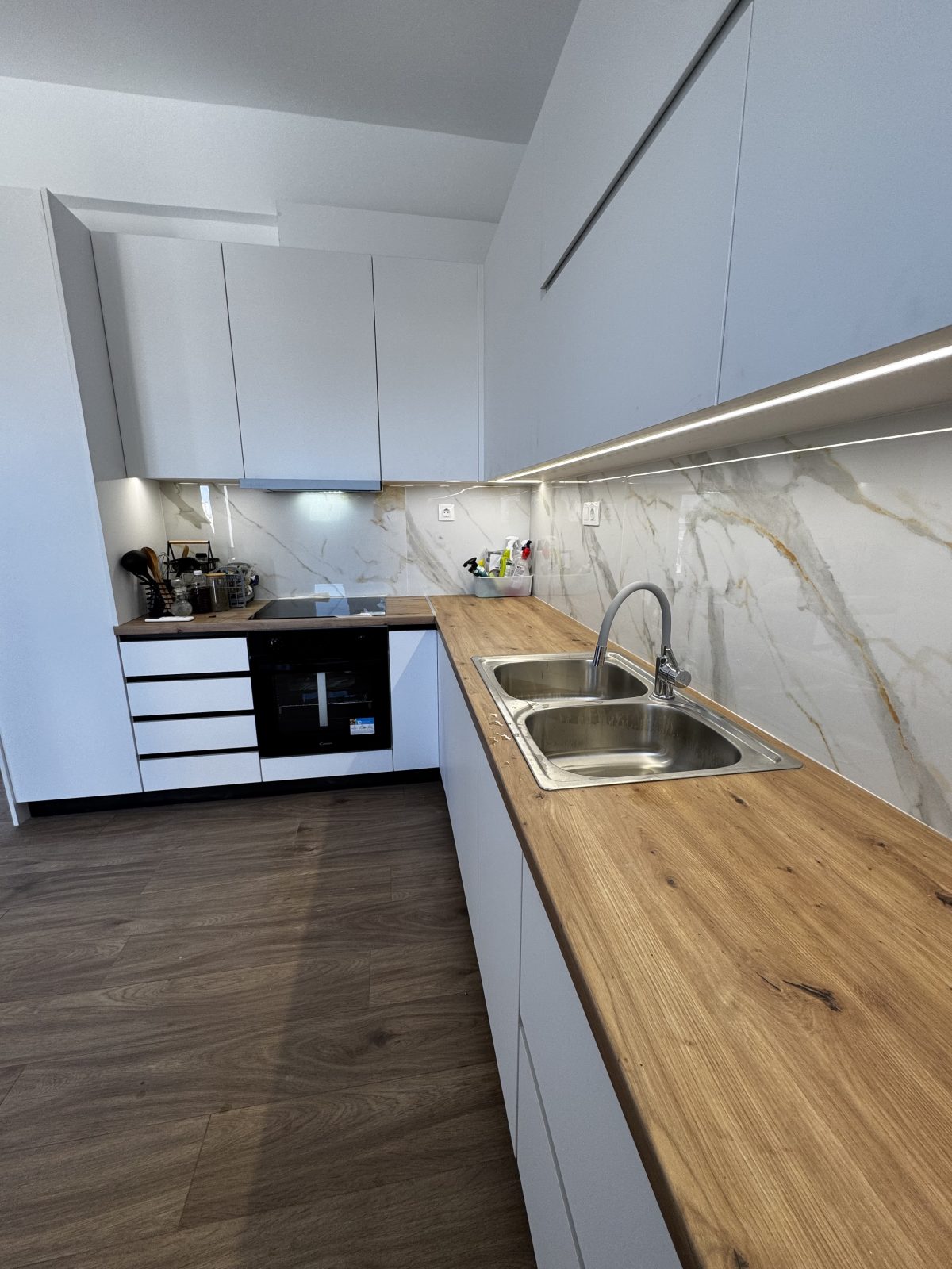 Κατασκευή νέας κουζίνας και τοποθέτηση ντουλαπών στα υπνοδωμάτια, για μέγιστη εργονομία και αποθηκευτικούς χώρους.